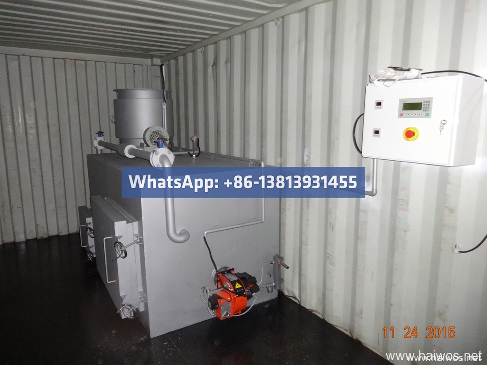 The containerized mobile incinerator mounted in ISO container before leave factory, pre-installation, no incineration house
